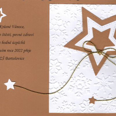 Krásné Vánoce, mnoho štěstí, pevné zdraví a hodně úspěchů v novém roce 2022 přeje ZŠ Bartošovice.